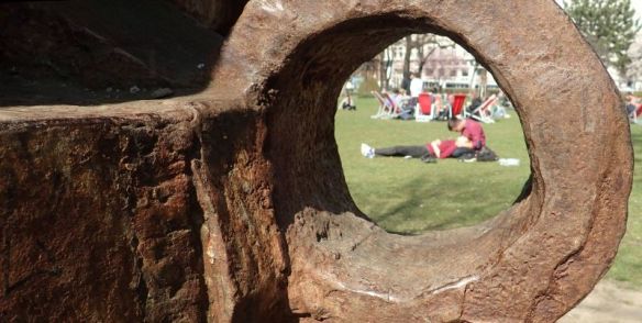 May 21: A glimpse of an intimate moment in the Sigmund-Freud-Park through a detail of an iron sculpture… and no, there is no deeper meaning to the photo, sometimes a sculpture is just a sculpture.