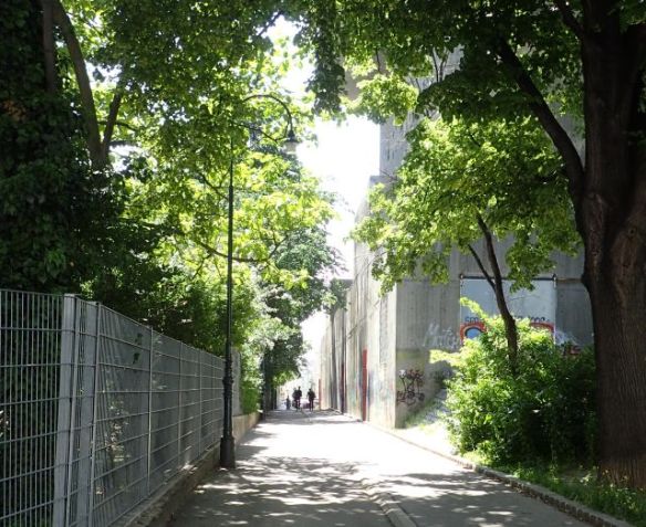 The base of the fire control tower now makes for a shady and sheltered bike path as part of Arenbergpark.