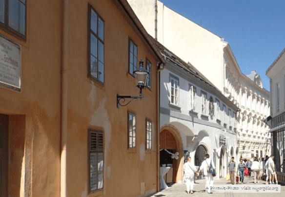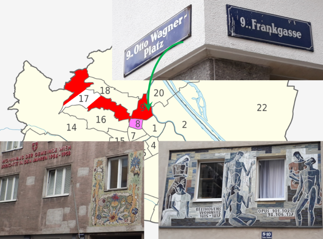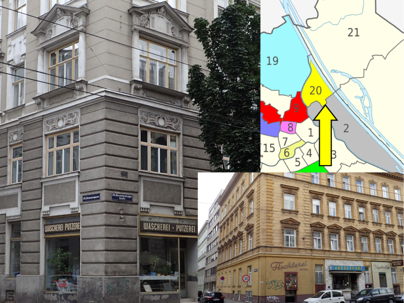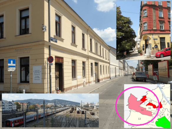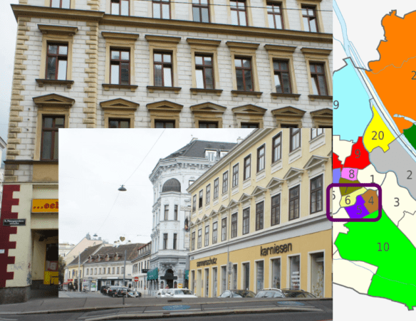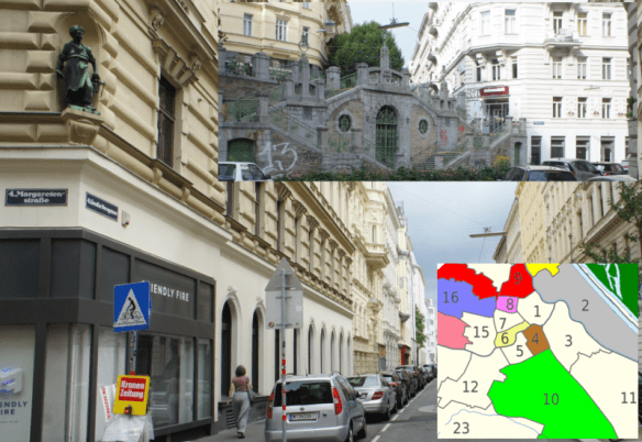 A classic building on Margareten Street and an insert of the same street show how it used to be a main street running towards Vienna.