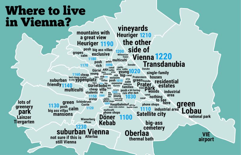 The first district to visit?. Why the 17th of course! Selected only for its very punny connection to Canada. But first an overview courtesy of a tongue in cheek community character map ‘The Vienna Expat survival guide: 13 ultimate tips for internationals moving to, or living in Vienna‘.
