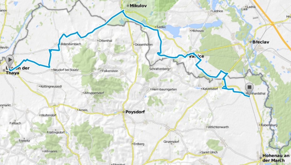 | 2018-08-05 | 60km | Laa to Hohenau (almost) | Rolling hills, lots of rural-ness. |