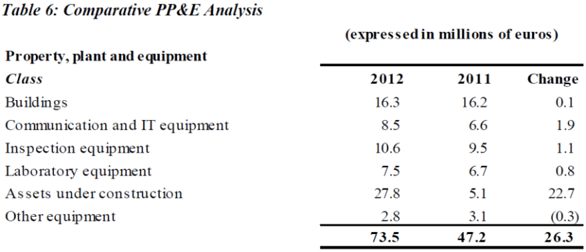 2014-IAEA-2012-FinStatements-Table6-small Published April 20, 2014 at 881 × 380 in 2014 IAEA – PP+E Lifecycle Model – Directors Cut 2012 IAEA Financial Statements – Table 6: Comparative PP&E Analysis
