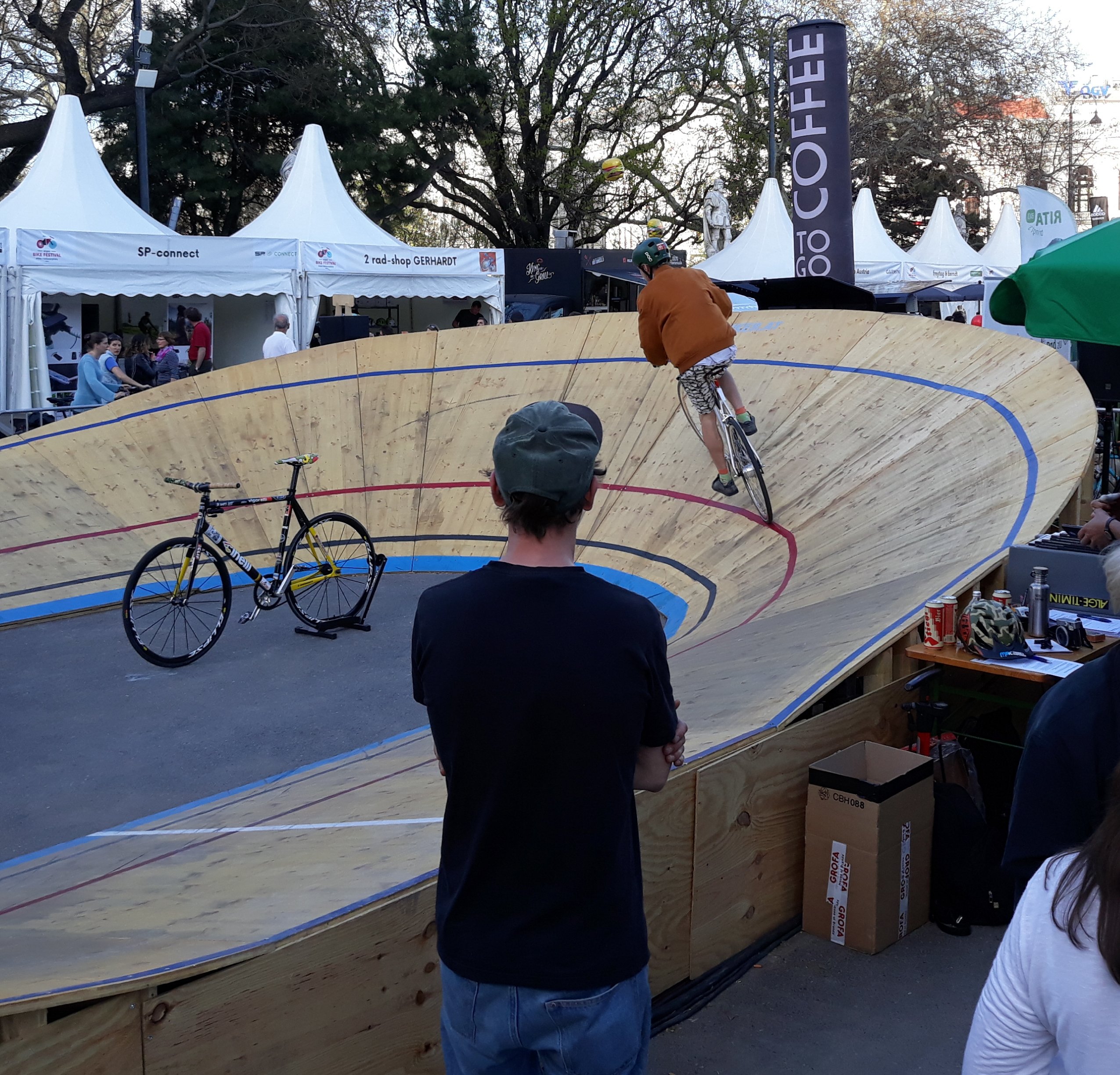 April 20: last weekend a huge bike event was in Vienna. In addition to going around in circles there were also BMX jumps and dozens of displays and vendors. A cyclist’s Nirvana.