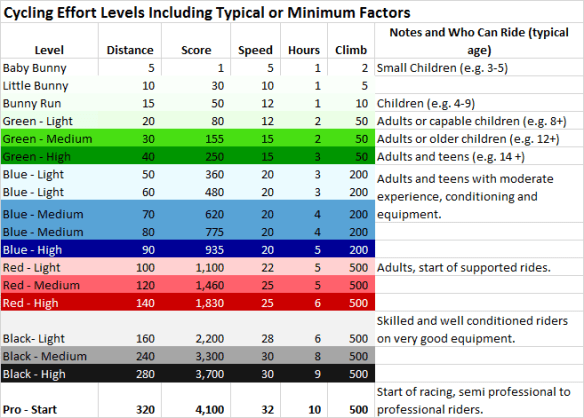The next blog will discuss the algorithms for each of the above. Prior to going down a rabbit hole of cartesian factors a more important consideration is whether the right secondary factors are being considered. Drop me a note or a comment on the above factors. Have I missed a big one, included some questionable ones or are the above really irrelevant when planning a ride for a club?