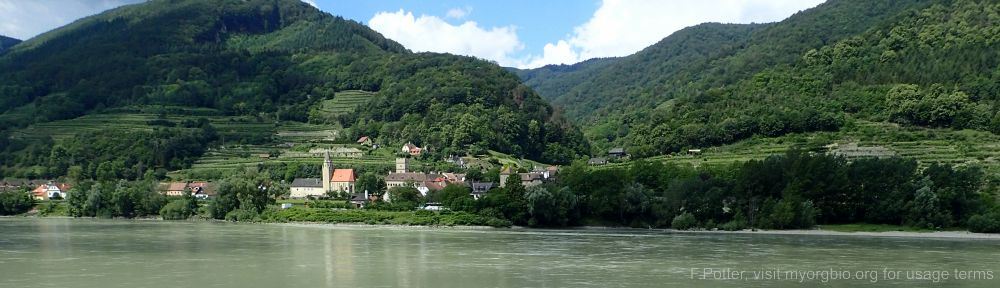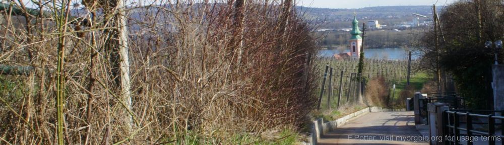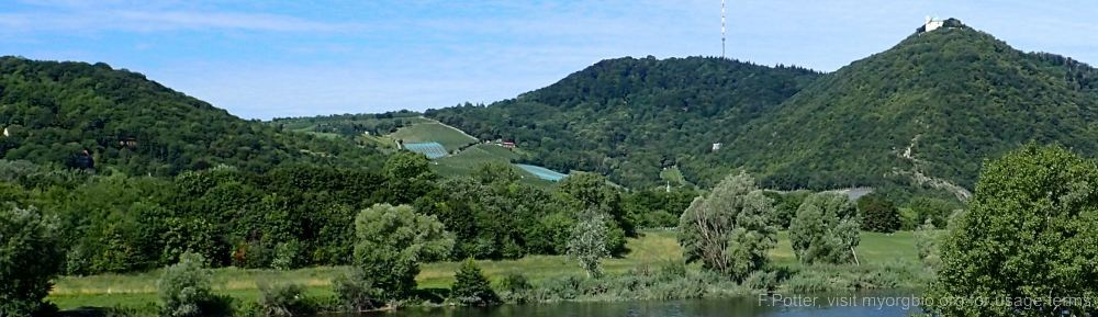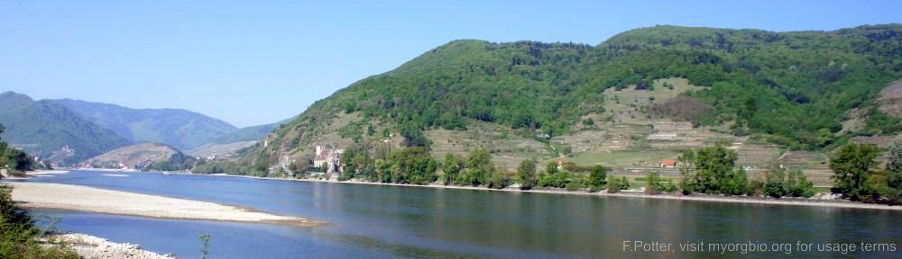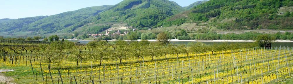Danube River, April 2011. Vineyards are in the foreground and the river in the background.