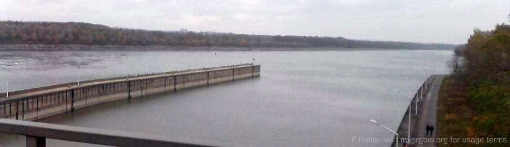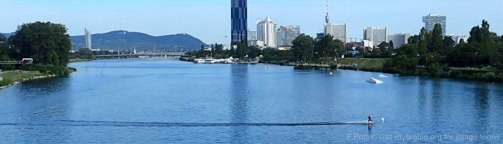 Danube River lookign approximately southeast from Leopoldsburg, Vienna Austria. July 2011.