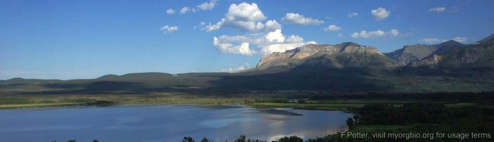 Waterton Lake, looking roughly South East from the Bear’s Hump – a small low mountain rising above Waterton Town Site. The water front portion fo the town is visible in the front-middle portion of the photo.