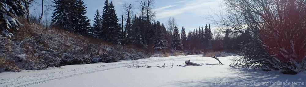 A large pot hole lake about the middle of Parkland NA, P. Potter, 2024-01-21.