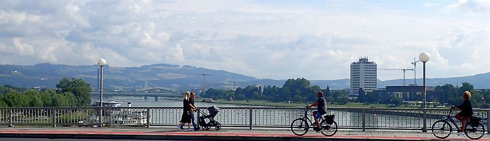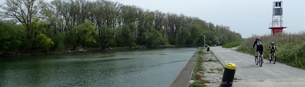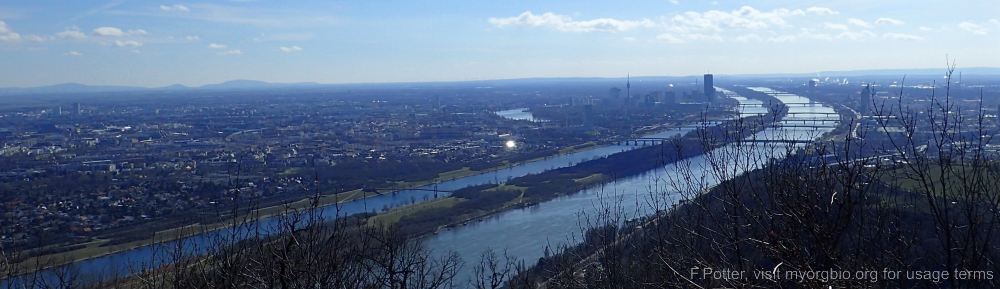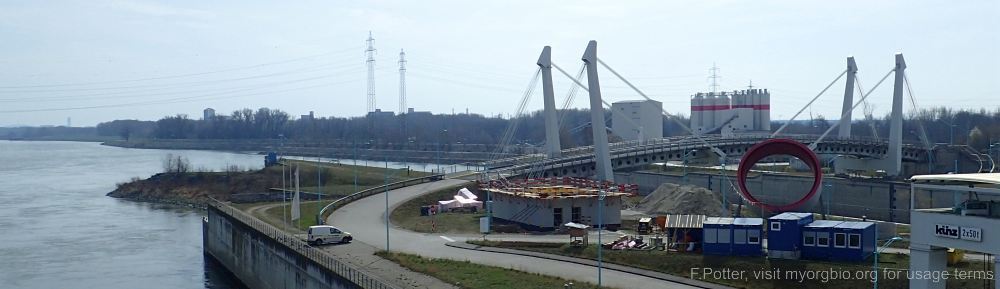 End of the Danube Canal and the start of the Lobau National Park; from the Kraftwerkbrücke Freudenau.