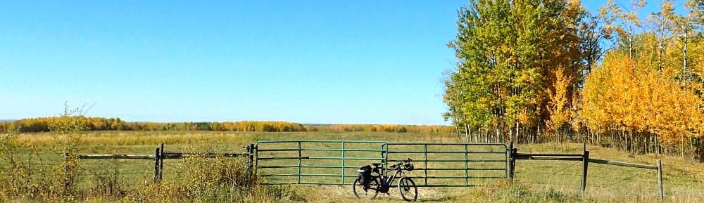ATV track heading north from the oil field installation, Bridge Lake NA, P. Potter, October 1, 2023.