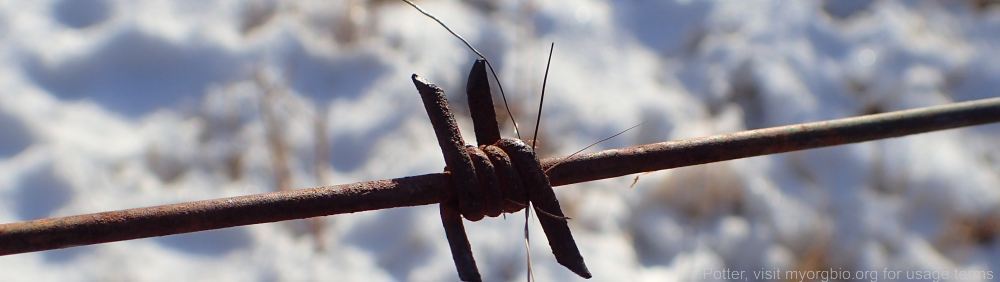 Barb wire close up, Pigeon Lake NA, 2023-08-20, P. Potter.