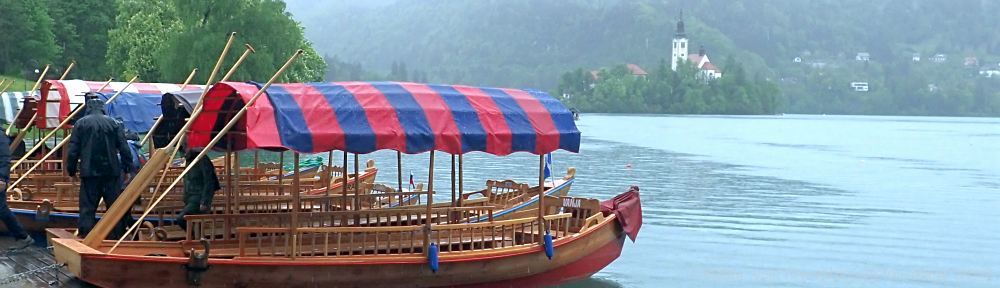 Traditional wooden boat known as a pletna, the only way to Bled Island.