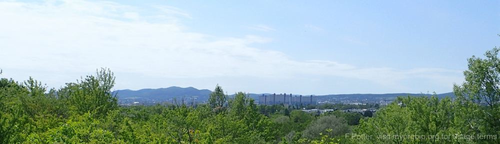 Looking west from the Wienerberg Recreational Area towards the Alterlaal complex, Austria, 2023.