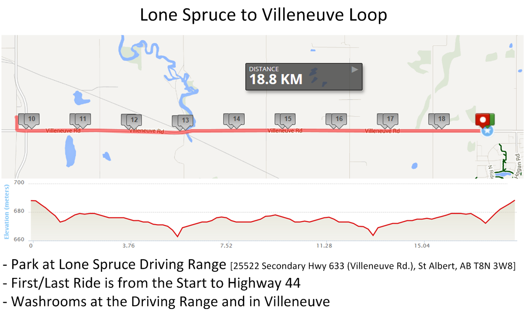 - Half ~40KM ride to the Top of the Calahoo HIll and return to St. Albert